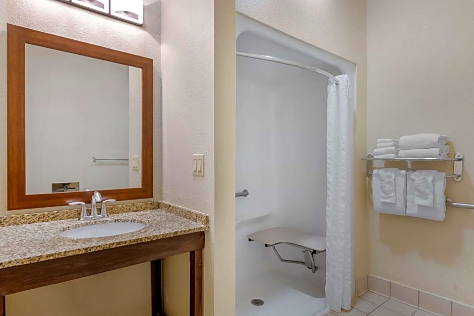 As comodidades no local incluem estacionamento gratuito e Wi‑Fi gratuito, uma piscina externa e serviço de transfer gratuito, além de um centro de fitness gratuito e recepção 24 horas. O hotel é para não fumantes e acessível a cadeirantes, com elevadores para acesso aos andares superiores, ar‑condicionado, amenidades de higiene gratuitas e banheira. Há opções que aceitam animais de estimação com cobrança adicional, e guarda‑sóis e espreguiçadeiras/cadeiras de praia aguardam os ensolarados dias da Flórida.
